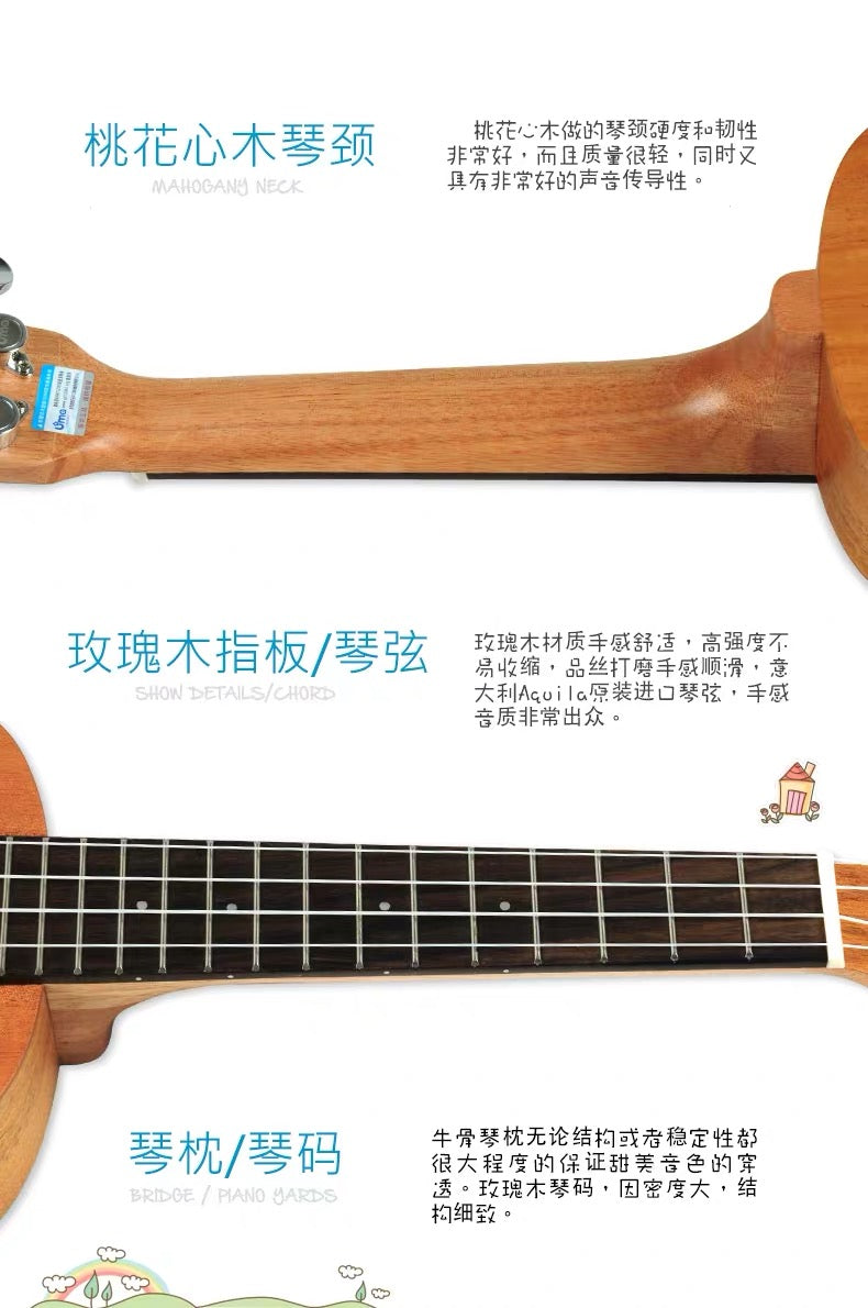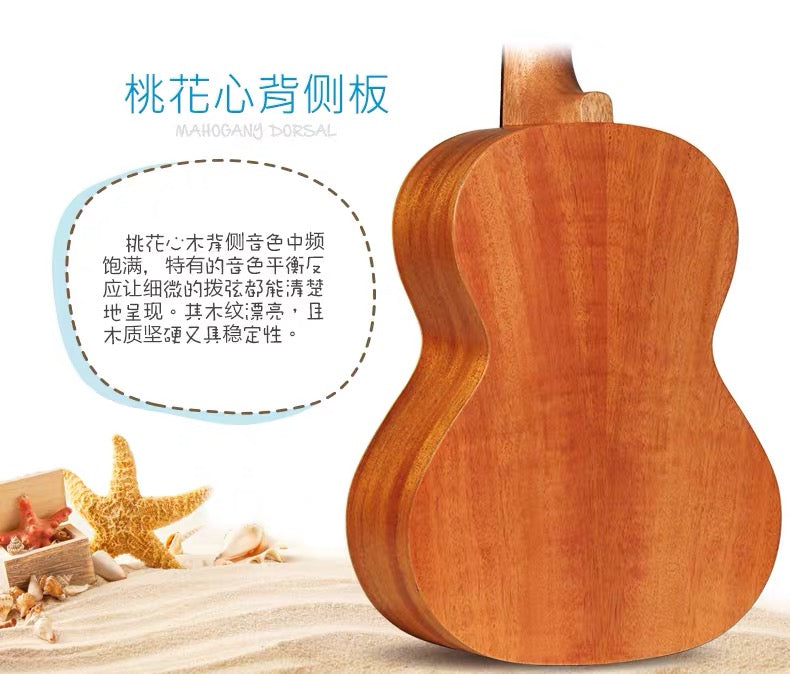 A fullbodied tone with plenty of Sweet Highs and Mellow Lows that combine for a full rich sound.A satin finish gives the Ukulele an antique, wellplayed in feel.You will appreciate the low action and the ease of playability.