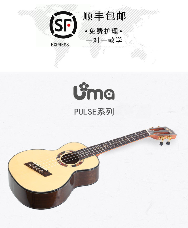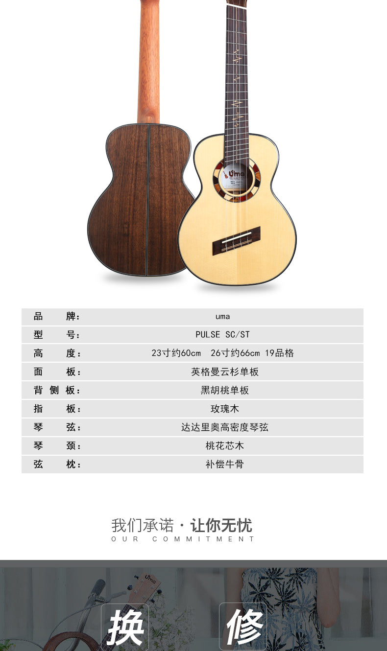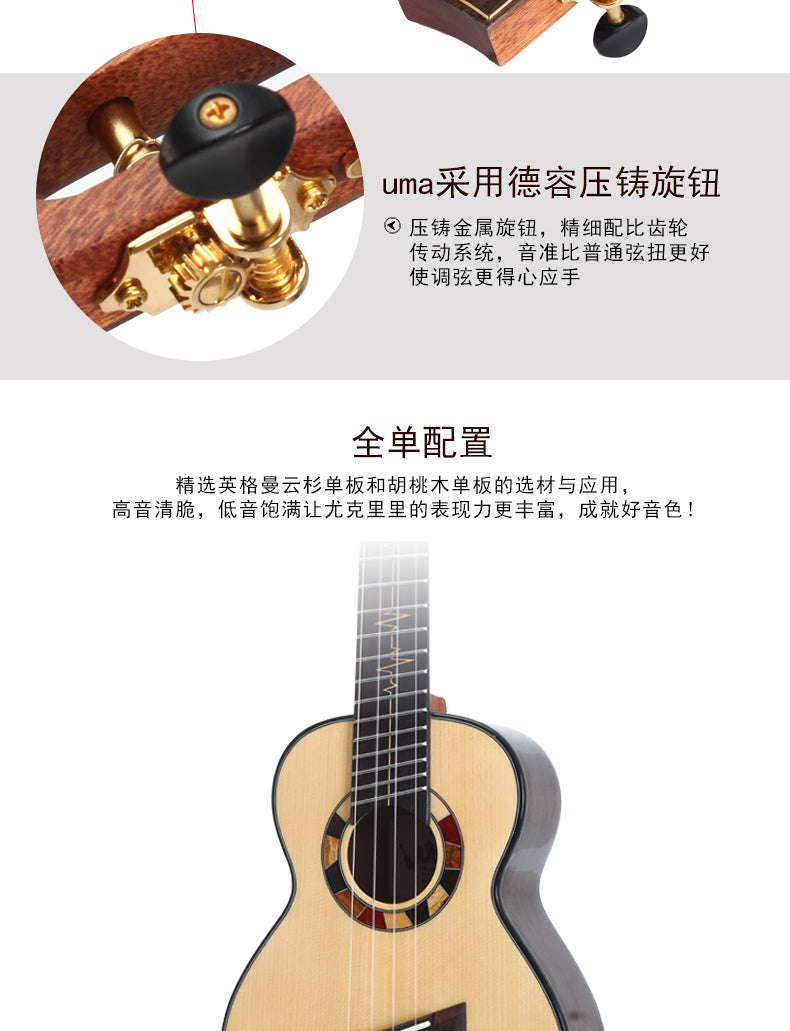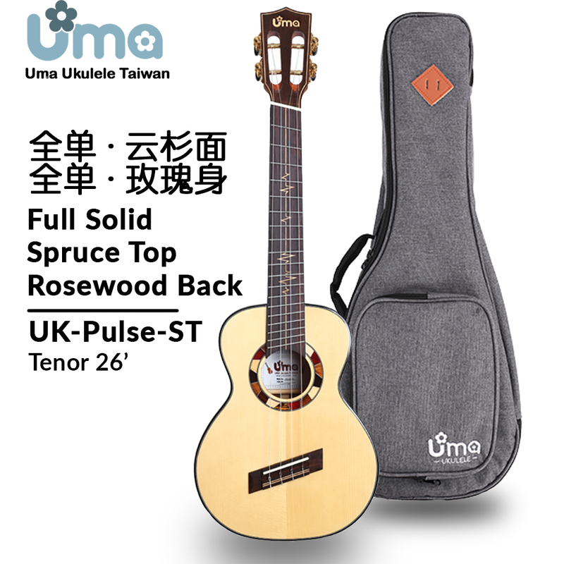 Uma Ukulele 26'Tenor Full Solid Engelmann Spruce / Black Walnut UMAPulseST